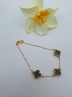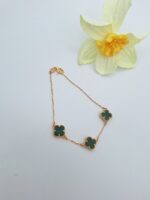 دستبند طلا 18 عیار 2.24 گرمی ونکلیف سه گل سبز