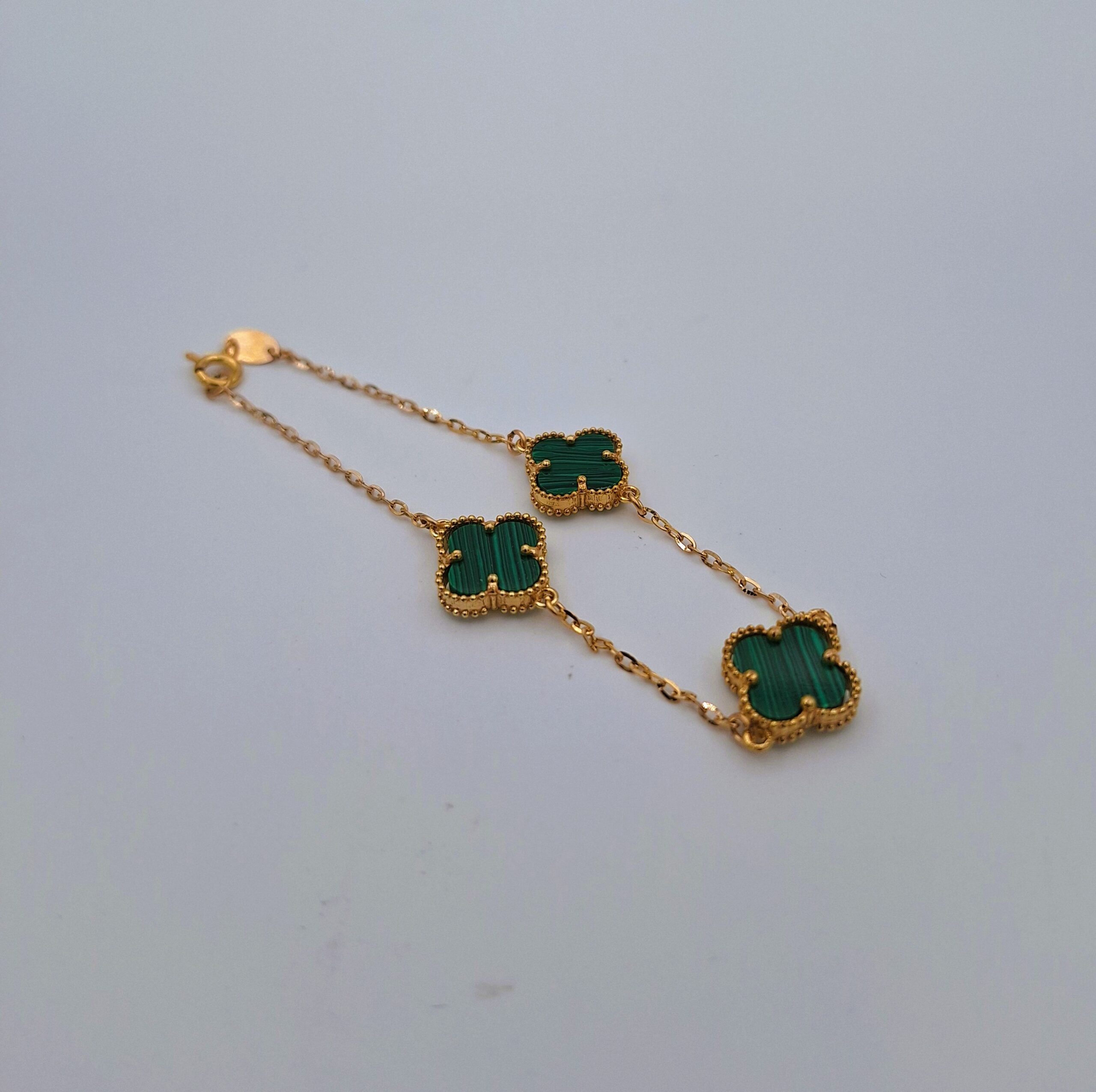 دستبند طلا 18 عیار 3.86 گرمی ونکلیف 5 گل سبز