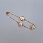 دستبند طلا 18 عیار 3.92 گرمی ونکلیف 5 گل سفید