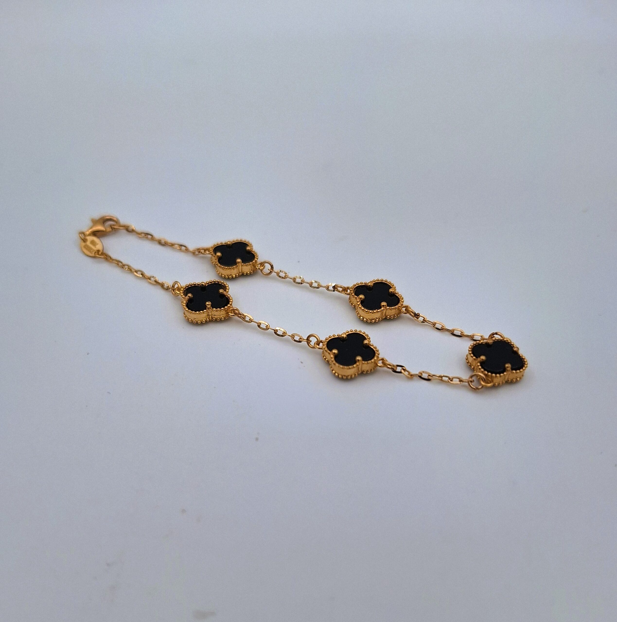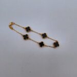 دستبند طلا 18 عیار 3.77 گرمی ونکلیف 5 گل مشکی