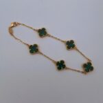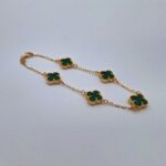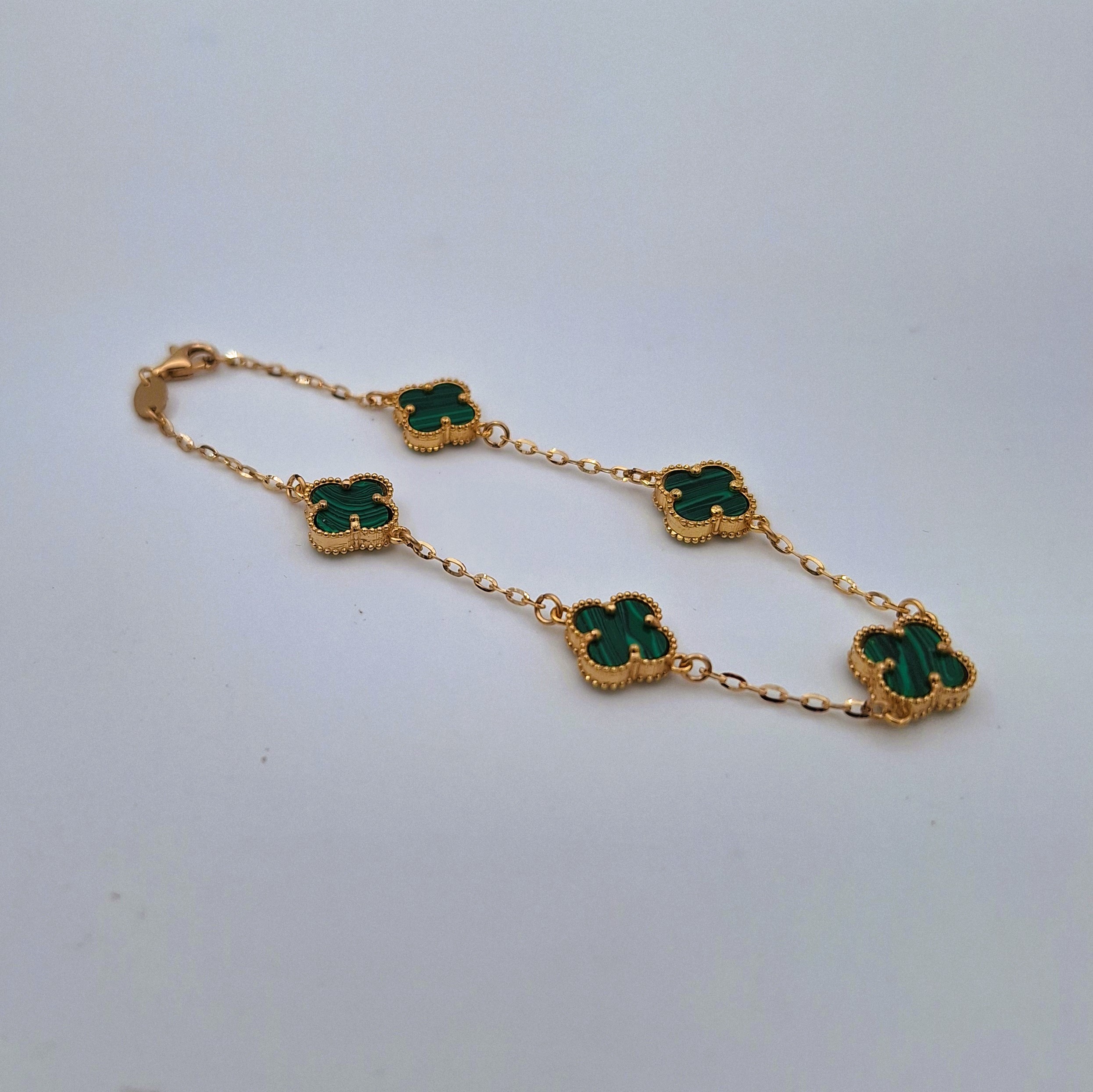 دستبند طلا 18 عیار 3.86 گرمی ونکلیف 5 گل سبز