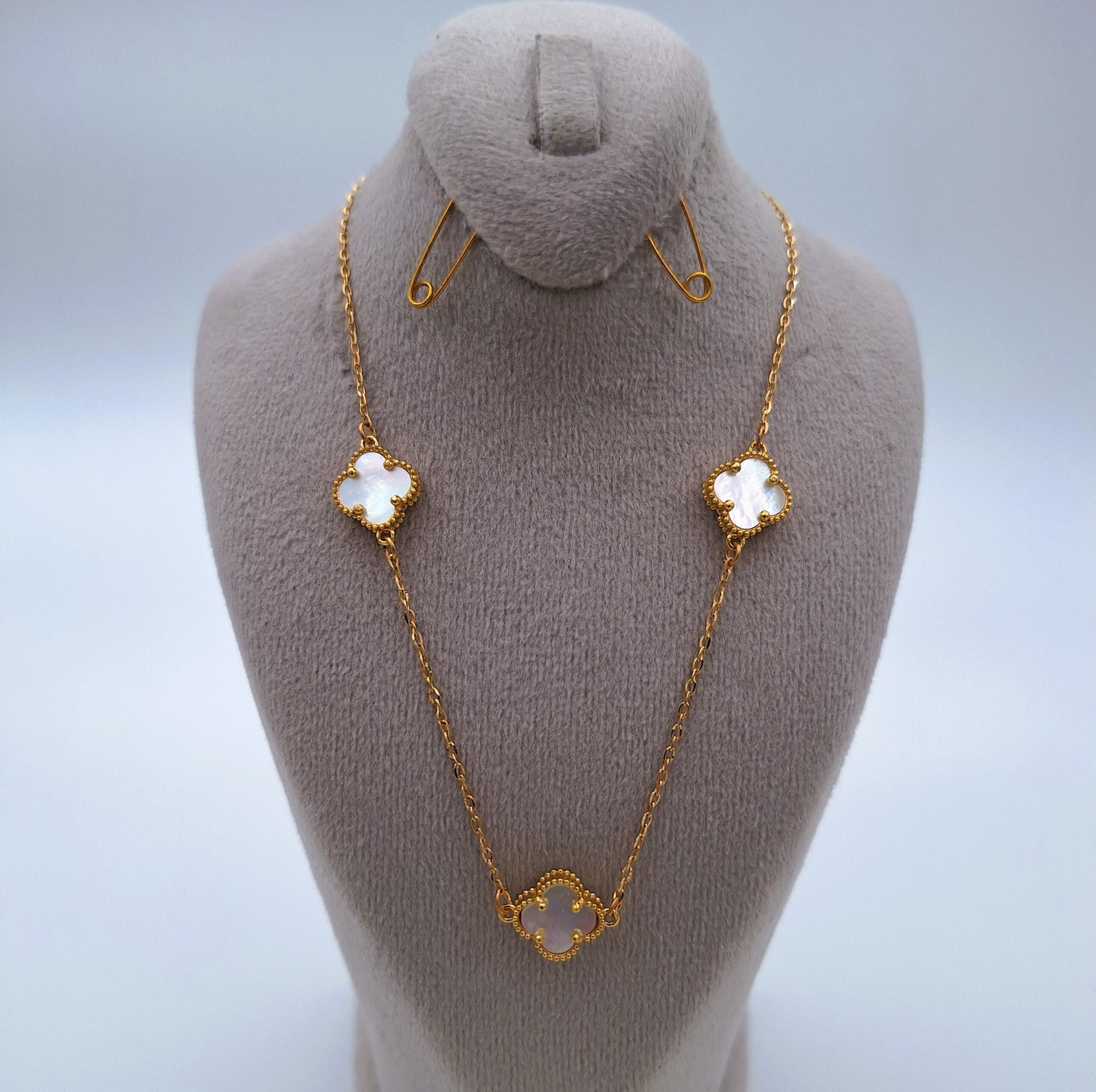 زنجیر طلا 18 عیار 3.48 گرمی 3 گل ونکلیف سفید